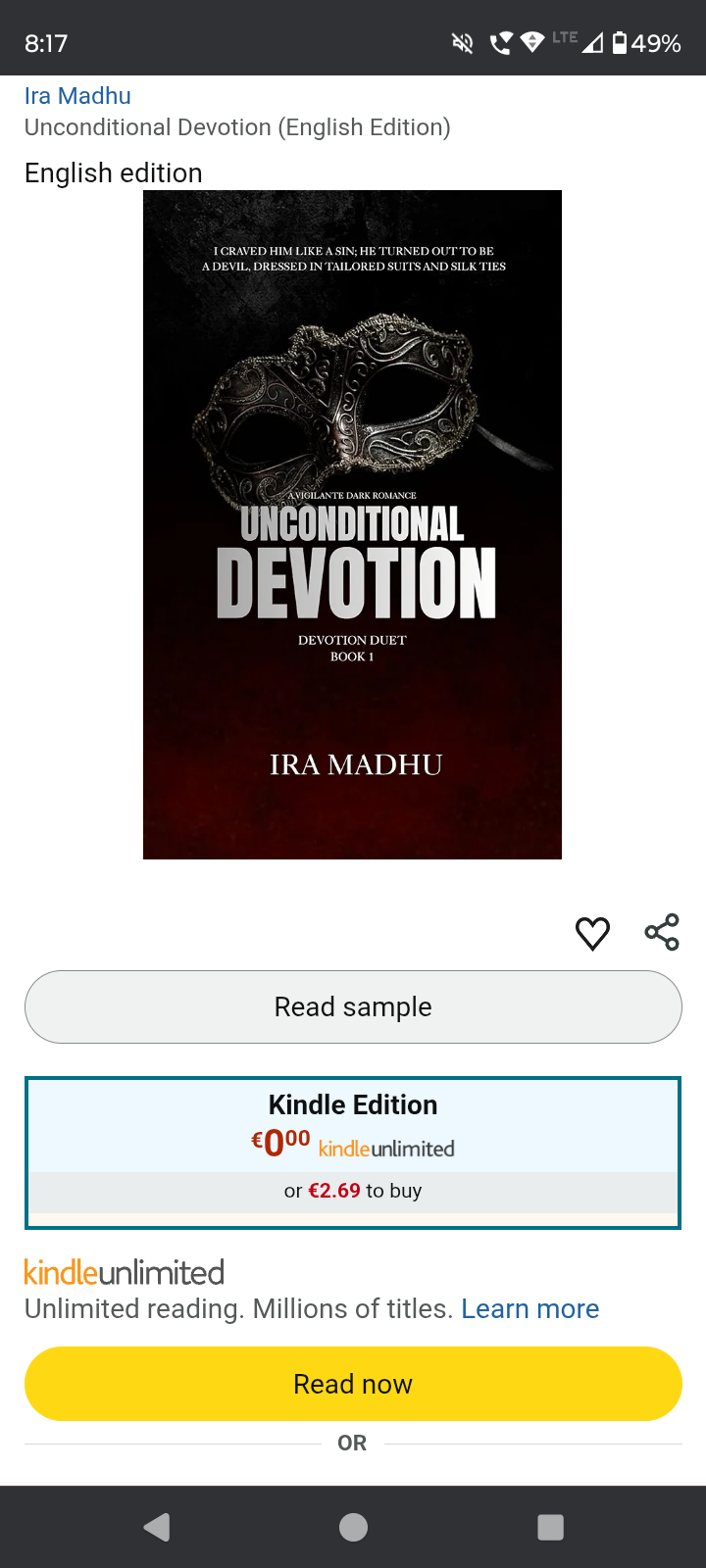 Book - UNCONDITIONAL DEVOTION by Ira Madhu (Previously known as - Raine M. or Insanelycryptic)